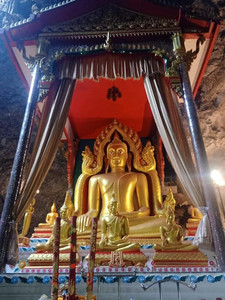Located in Kanchanaburi, this one has nice views and if there are enough visitors a floating Nun show. 269 steps from the Naga head to the dragon entrance, leading you to the 'Ku Ha Mang Korn Sawan or locally known as 'Nang Bua Klee Cave'. The cave houses a magnificent buddha image called 'Luang Por Yai Chinnaraj'. 2 hours or less will see you up and back down again and buying lots of water from the local vendors dotted around. Its worth a visit if you are spending more than a day in the province and can be combined with two other local caves. This gives you a full day off the tourist trail and the death railway scene.